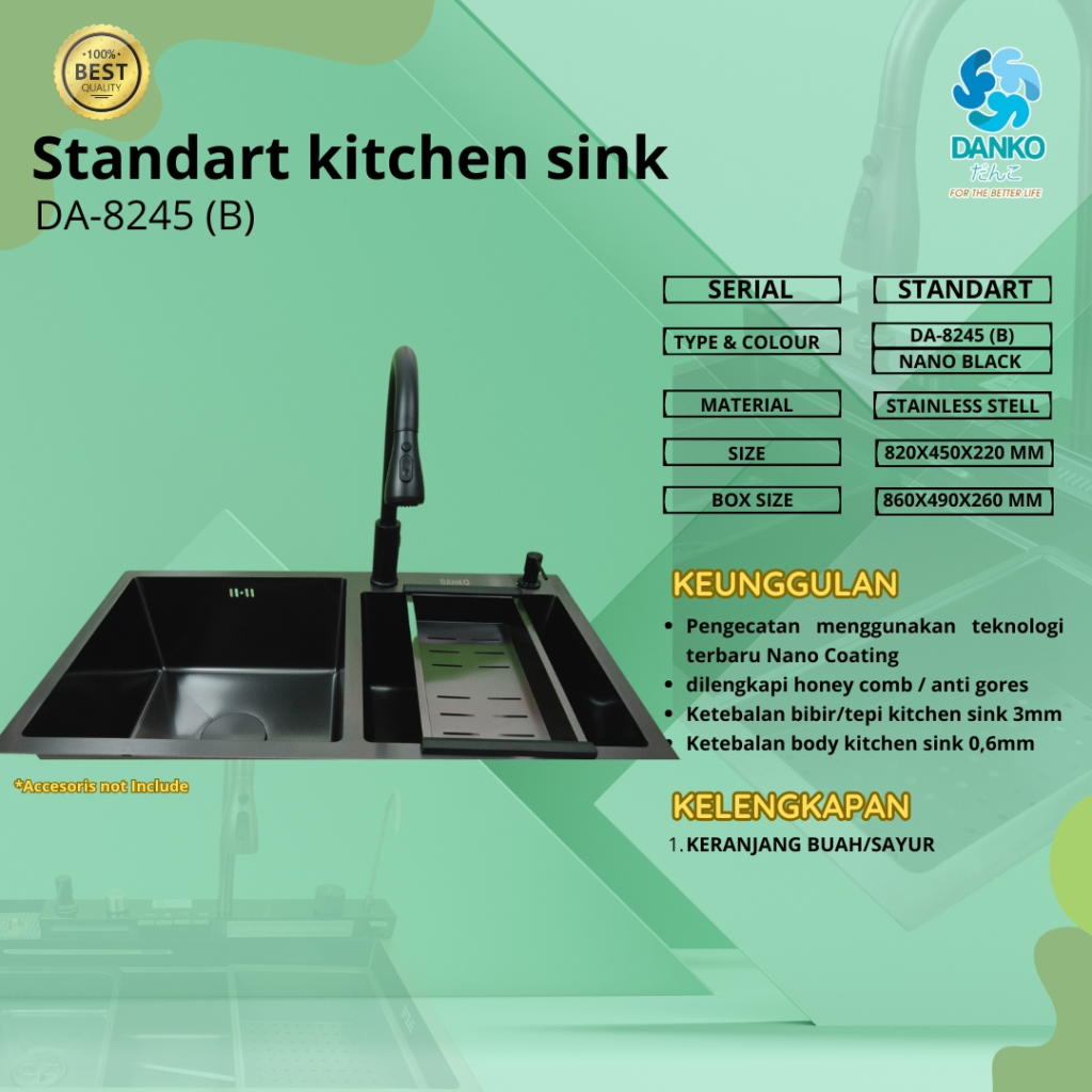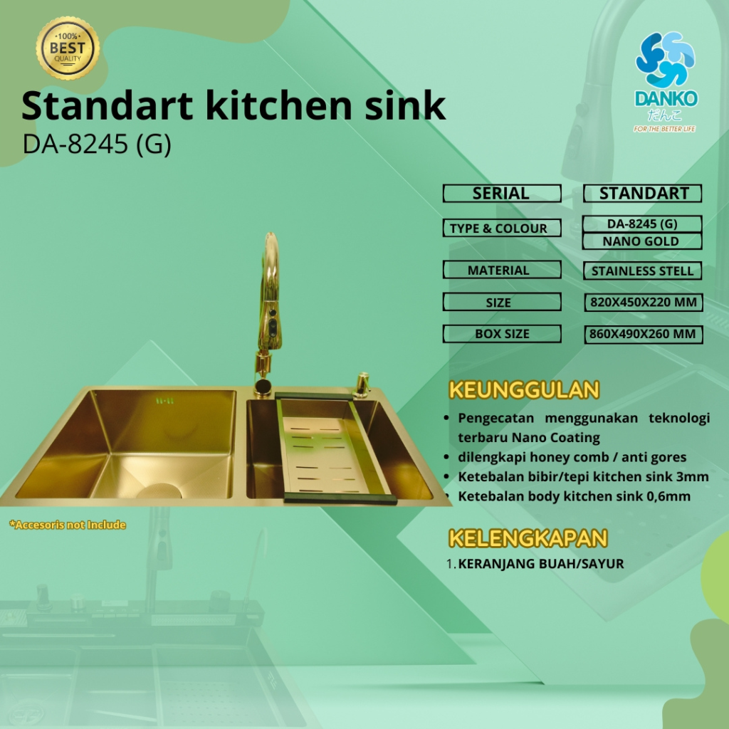 DANKO Kitchen Sink is designed for modern markets that value quality, design, and comfort. Ideal for mid to premium segments, for both residential and project applications. Danko kitchen sink is a Japanese brand that has an elegant design and uses premium quality materials. There are two types for the Danko Kitchen Sink: DA-8245 (B) DA-8425 (G)